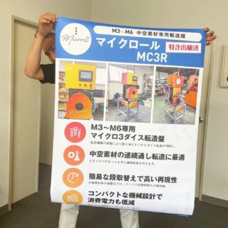 メーカーさんの展示会用ポスターとチラシ ポスター・パネル 2019.10.282026.04.10 日進市のメーカー 三嶋商事さんの展示会用ポスターとチラシを作らせていただきました。 ポスターはB2サイズ(515×728ミリ)、結構大きいです! 大きさがわかりますでしょうか? 机が隠れちゃいました。 同じデザインでチラシもつくりました。こちらは普通のA4サイズ。↓ 並べると、こんな感じ! チラシちっちゃ! ポスターはいろんな大きさで1枚から作れますよ~ ※仕様によっては10枚から こんな変形もできちゃいます♪ ↓↓↓