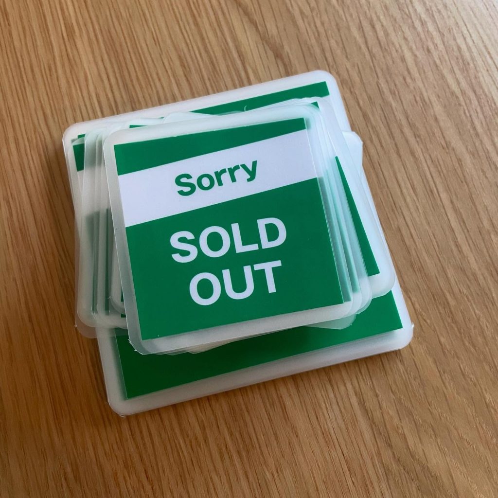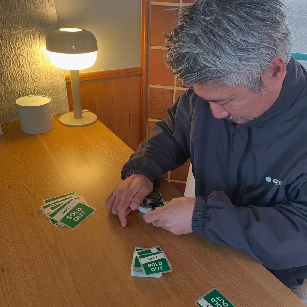 売り切れの札 メニュー 2025.04.172026.04.08 飲食店のメニュー表に貼る「売り切れ」の札を作りまくる深谷さんです。 マットのラミネートをかけ角丸にし、裏のテープは付箋のように何度でも貼ったり剥がしたりできる仕様になってます。