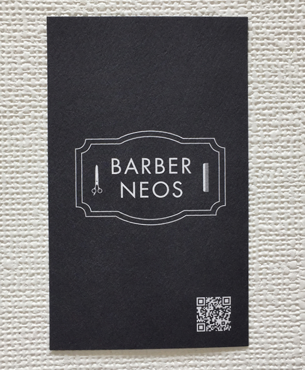 カード名東区に昨日、4月1日にオープンしたオシャレ床屋さん、バーバーネオスさんの名刺とショップカードを作らせていただきました!