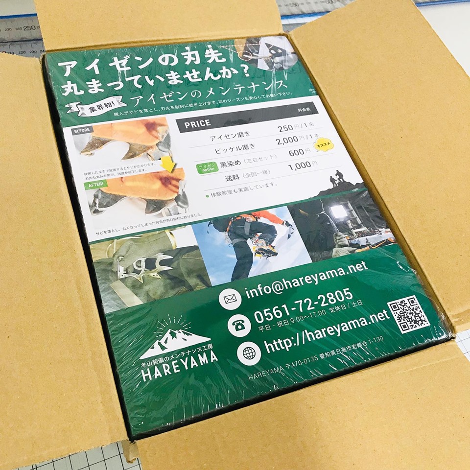 登山用品のメンテナンス HAREYAMAのチラシを作らせていただきました❣️