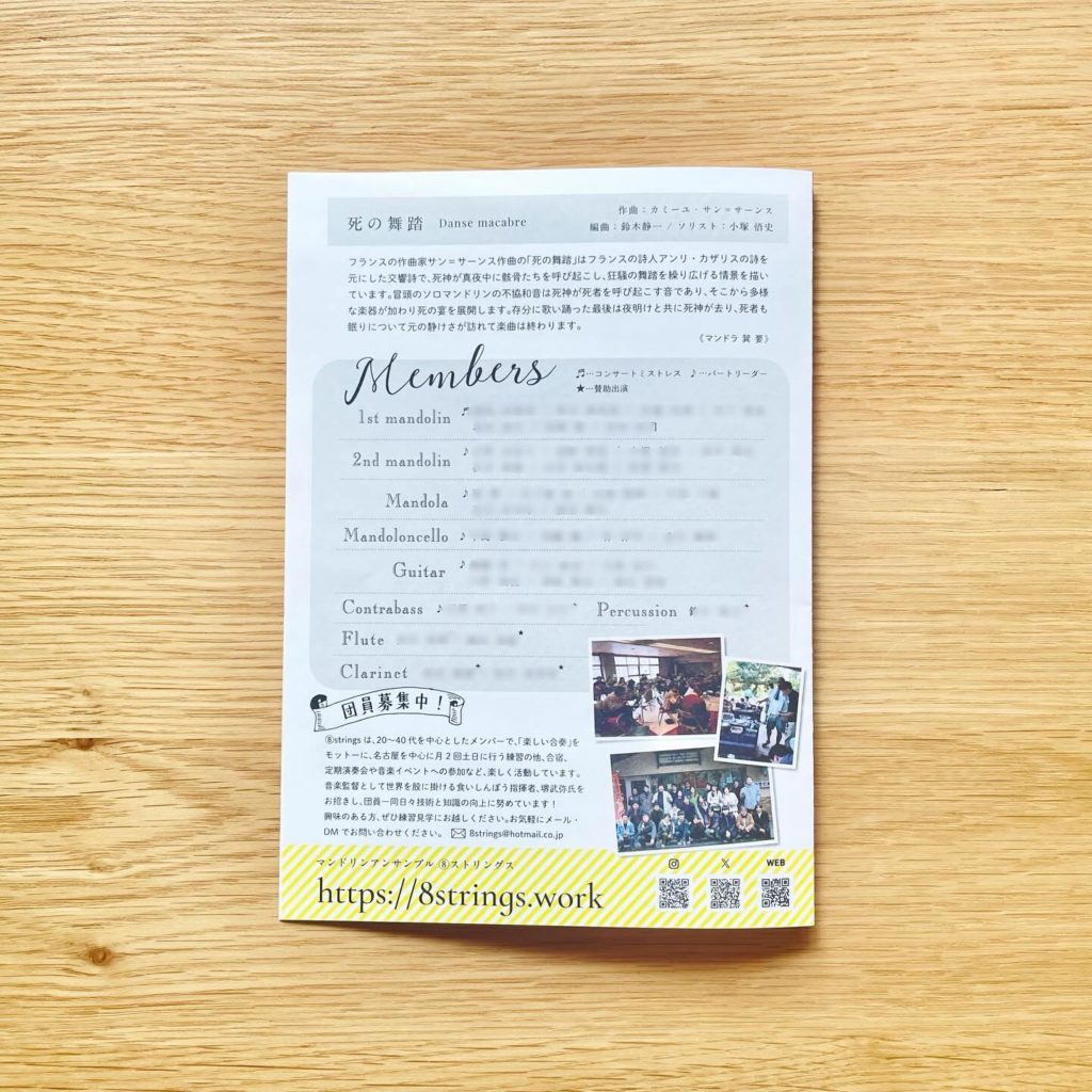 チケットチラシパンフレット芸術・文化 演奏会・コンサートのチラシ、チケット、プログラム。 チケット 2026.01.30 ご希望のコンセプトに基づいて、統一感あるデザインでお作りします。 目次 チラシチケット チラシ 今回は折らずに持って帰りやすい、コンパクトなA5サイズです。 チケット ミシン目が入っています。 ポスターや各種物販グッズもお気軽にご相談下さい。 この記事を元に問い合わせる 必須お名前 必須メールアドレス ※携帯キャリアメール(@docomo.ne.jpなどドコモ・ソフトバンク・auのメールサービス)は届かない可能性があるので、なるべく他のアドレスでお送りください。3日以上返信が無い場合はお手数ですがお電話ください。 必須電話番号※メールが届かない場合おかけすることがございます。 任意住所※市区町村まででもOKです。 任意会社名・屋号 任意職種 必須お問い合わせ内容 ※確認画面は出ません。そのまま送信されますので、よくご確認の上送信ボタンを押してください。 ※不具合などで送れない場合は、お手数ですが info@nagakute-design.comまたは090-6363-6760(深谷)まで連絡下さい。