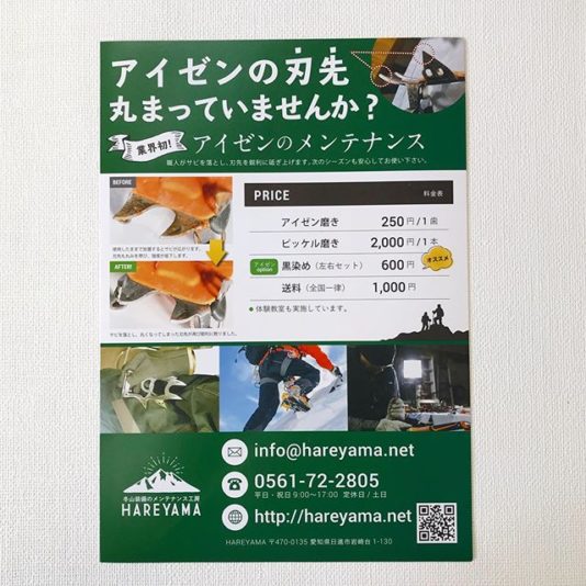 ショップ・スクール・教育 山小屋で見つけてください! 登山用品メンテナンスのチラシ