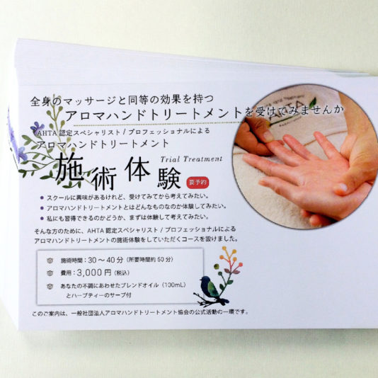 飲食店・カフェ・食品 アロマハンドトリートメント体験 DMハガキ